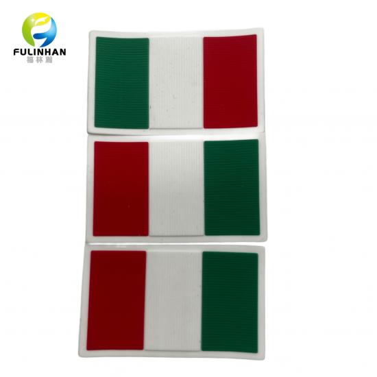 Individuelle 3D-Silikonetiketten in Flaggenform bestehen aus umweltfreundlichem, flexiblem Silikon mit erhabenem Logo-Effekt. Diese wasserfesten und langlebigen Aufnäher eignen sich perfekt für Jacken, Uniformen und Sportbekleidung und unterstreichen Ihre Marke oder Ihren Stolz auf Ihr Land mit Stil.